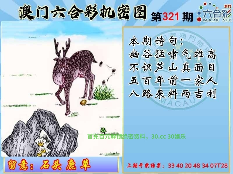 | 321期【解机密图】:开(羊23) 幽谷猛啸气雄高,不识芦山真面目,五百年前一家人,八路来料两吉利。 【解】:幽谷猛啸气雄高可解凶丑的生肖,五百年前一家人可解家禽的生肖。 【综合取特】鸡猴兔鼠狗羊 【提示波色】红波 |
